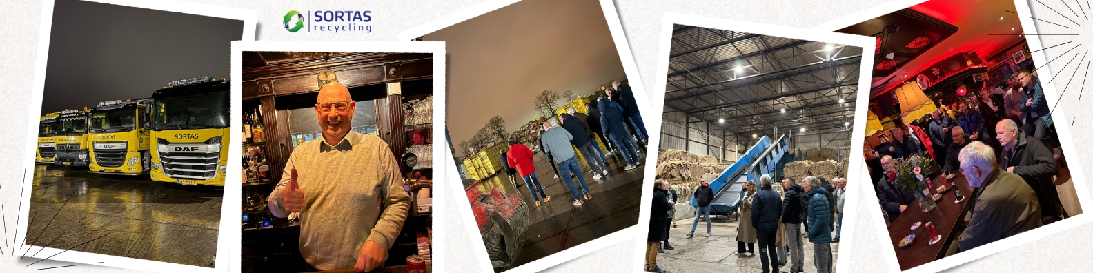 Daarna reden we door naar Sortas Recycling, waar we hartelijk werden ontvangen door o.a. Henk-Jan Raat. Eerst volgde een rondleiding over het terrein, waarbij Mark O’Connor – een Ier met flair, kennis van zaken én een accent waar je met plezier naar bleef luisteren – liet zien hoe Sortas afvalstromen scheidt, verwerkt en opnieuw inzet. Van katoenresten tot piepschuim viskisten: niets blijft onbenut.