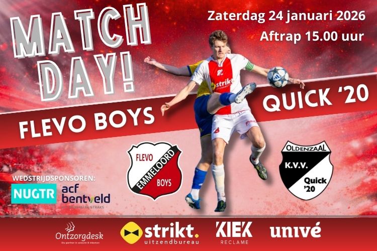 Flevo Boys speelt komende zaterdagmiddag de eerste thuiswedstrijd van 2026. Om 15.00 uur komt Quick’20 op bezoek in Emmeloord. Voor eigen publiek moet Flevo Boys zich zien te herstellen van de valse start van de tweede seizoenshelft.